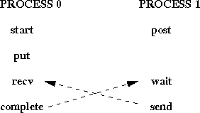 Consider the code fragment in Example General Active Target Synchronization , on page General Active Target Synchronization . Some of the calls may block if the target window is not posted. However, if the target window is posted, then the code fragment must complete. The data transfer may start as soon as the put call occur, but may be delayed until the ensuing complete call occurs.