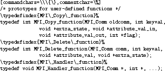 The following are defined C typedefs for deprecated user-defined functions, also included in the file mpi.h.